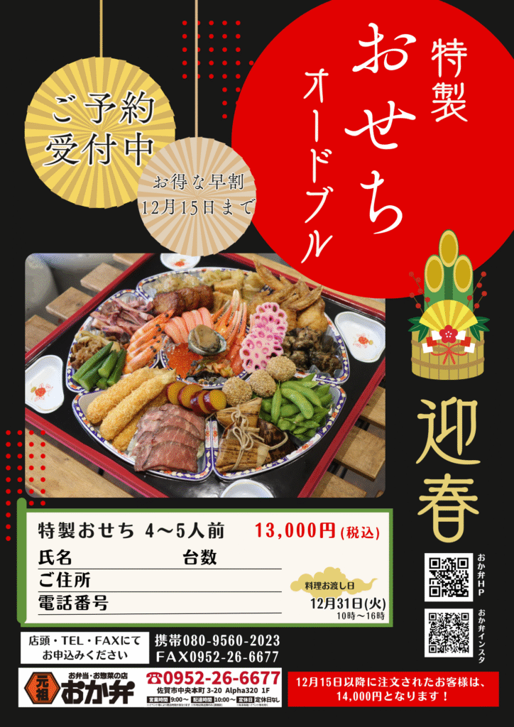 12月15日までにご注文いただいた方は、早割り価格として13,000円にて承ります。